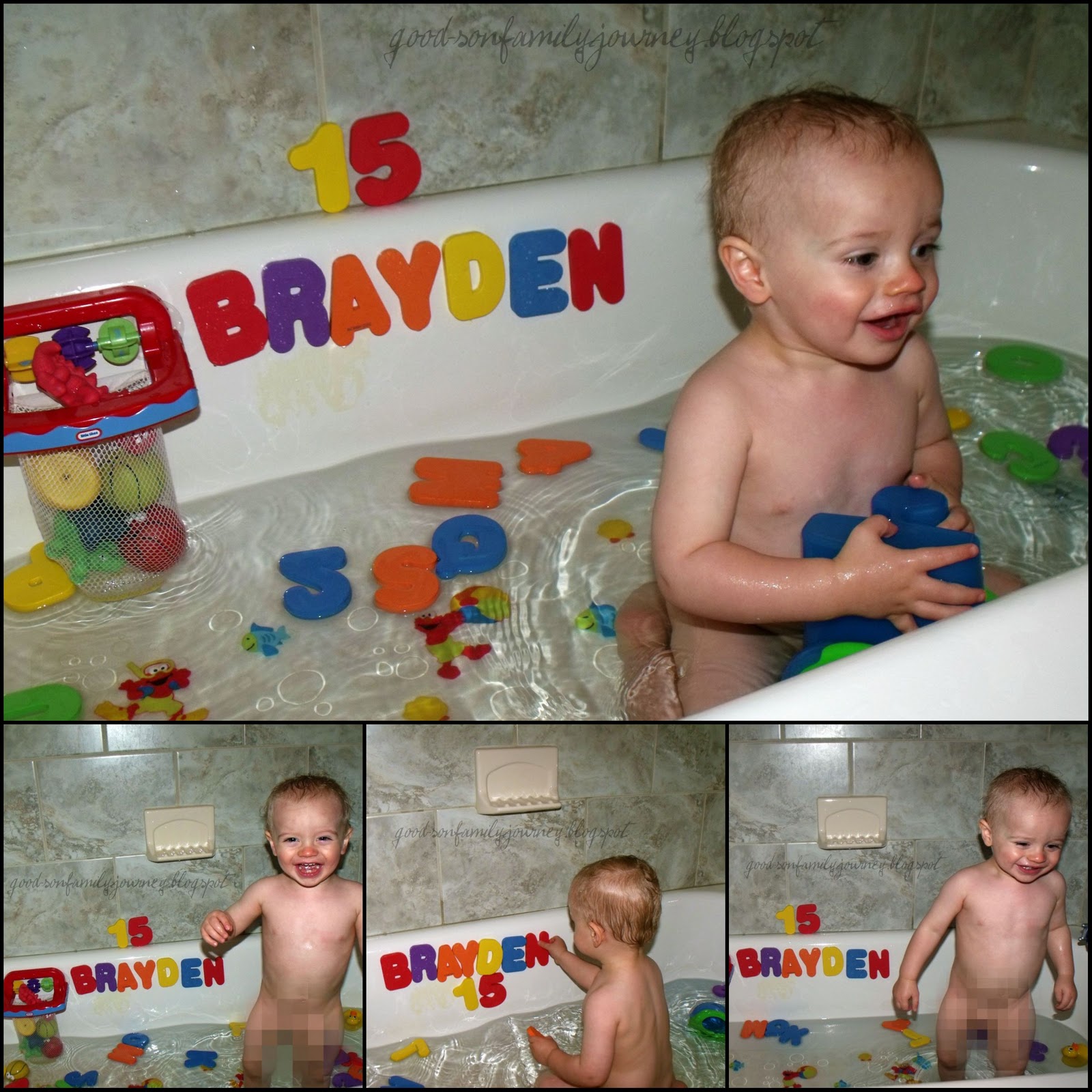 He is getting so big they grow up fast. How have you been feeling with baby # 2 by the way I love how you bleeped out his picture in the bathtub thats to funny